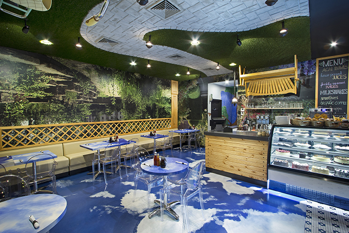 5. Flip the design upside down. (Don’t try to do this on your own.) A sky on the floor could be a nice touch to an entertainment room or an active finished basement. But remember, keep it fun and playful.