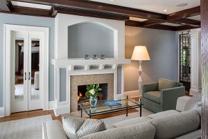 Watty was in charge of designing a house in Westfield for a couple living in the Netherlands requiring the design process with the clients to occur almost completely virtually through FaceTime. Watty had to find space to accommodate the many unique items the couple was bringing from overseas, but from her experience living in Switzerland and working in Paris, she was up for the challenge. Watty’s time abroad gave her a connection to her clients, “they understood that I knew what it meant to live overseas” she said, and knew that she would bring design ideas for the house that would make it suitable for long-distance travelers. Watty said her clients wanted the house to be tranquil, with little pops of color. To accomplish this goal, Watty and her team utilized a paint palette made up of every shade of grey. Watty said, “Some of the greys are green, some are blue, some are darker, and that’s one of the things that makes the job look so serene”. Another defining feature of the house is its architecture.