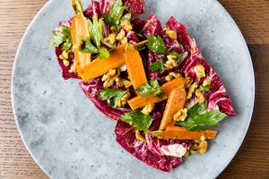 Before the first course, the staff kindly offered me a drink from an extensive list of fall cocktails, craft beers, and fine wines. I chose the seasonally raved Fall Sazerac after clear deliberation with the expert mixologist. The delicate sweetness from the vanilla bean syrup paired well with the bitter, yet fiery Remy Martin 1738 cognac, infused with cinnamon sticks. The glass perfumed a faint anise scent from the tiny dose of absinthe. Peychaud’s bitters lent the classic cocktail a dazzling scarlet glow, especially in front of the tabletop candlelight. A Sazerac at The Hill undoubtedly felt like dancing with the fiery colors of the late autumn leaves.