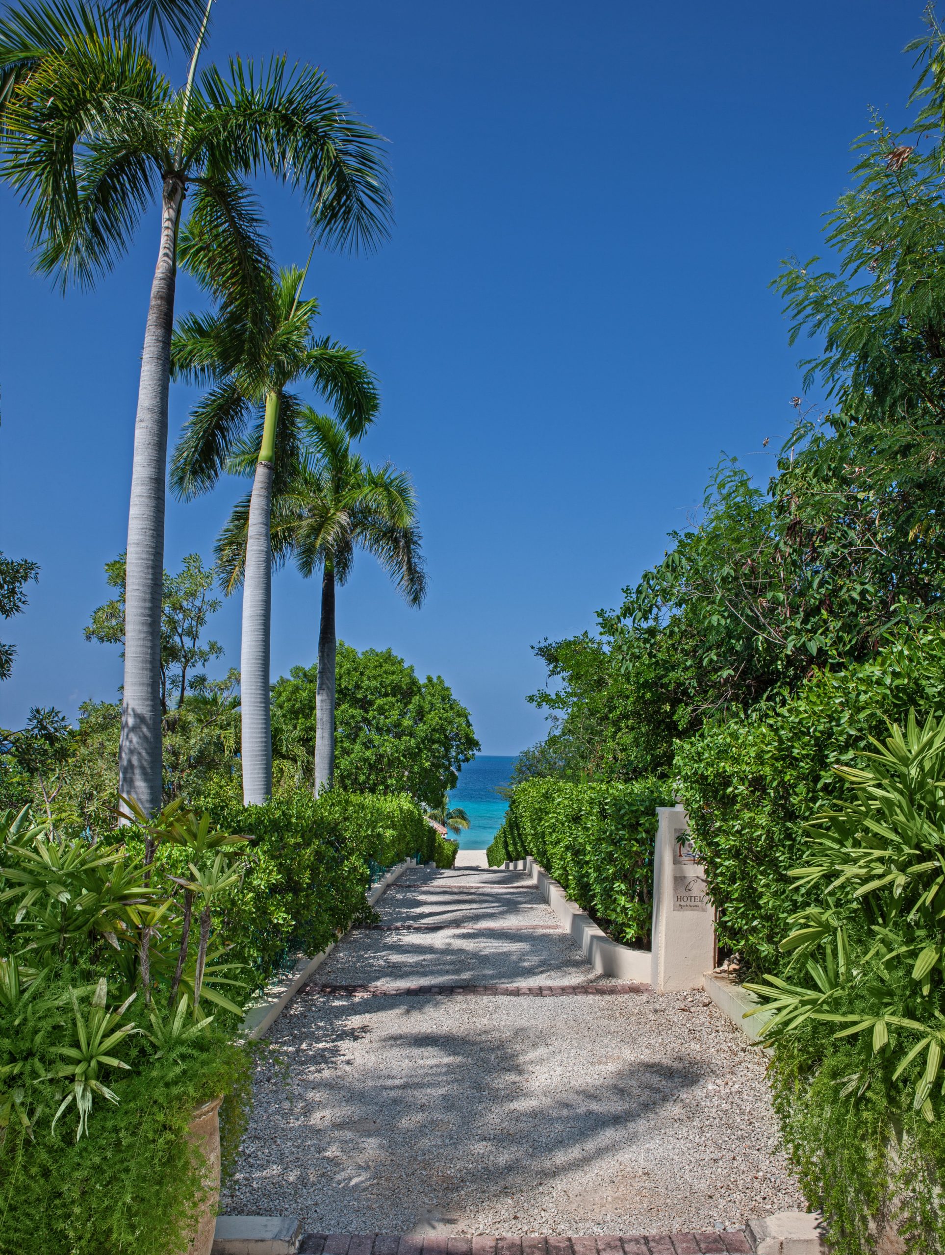 A private beach path easily accessed from the suites is decorated with blooming flowers and butterflies that flutter  overhead during the winter months. As travelers arrive at the beach, a set of loungers magically appear while a mixologist at the hotel’s Coral Beach Bar whips up a refreshing rum punch or procures a bottle of Champagne. The waters are warm and tame for swimming, kayaking, and snorkeling. The best part is feeling like you have this spot all to yourself.