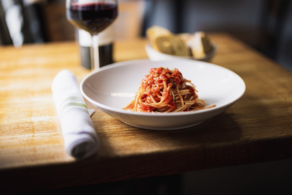 The tables at Trattoria are highly sought after, especially on weekends. For appetizers, which are fairly priced at $13 or less, get the meatballs braised in tomato sauce, or a seasonal salad with roasted butternut squash, mushrooms, and prosciutto. At least one pasta dish is a must; the Paccheri with Suckling Pig Ragù or Spaghetti all’Amatriciana are both vibrant and flavorful dishes that are popular choices. The braised veal cheek served atop toasted cornmeal porridge is a strong choice for a main. And lastly, a dessert favorite is the panna cotta with blackberry compote. The Trattoria is cash only, and they don’t serve alcohol, but diners are welcome to bring their own wine.