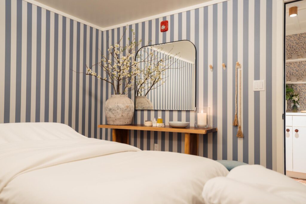 The retreat houses a heated pool, dry sauna, and steam showers — all nestled in a facility reminiscent of a traditional coastal Hamptons home. Adorned in pastel green brick and classic tile, the spa offers a variety of massages and facials equipped to destress anyone that walks through the door.