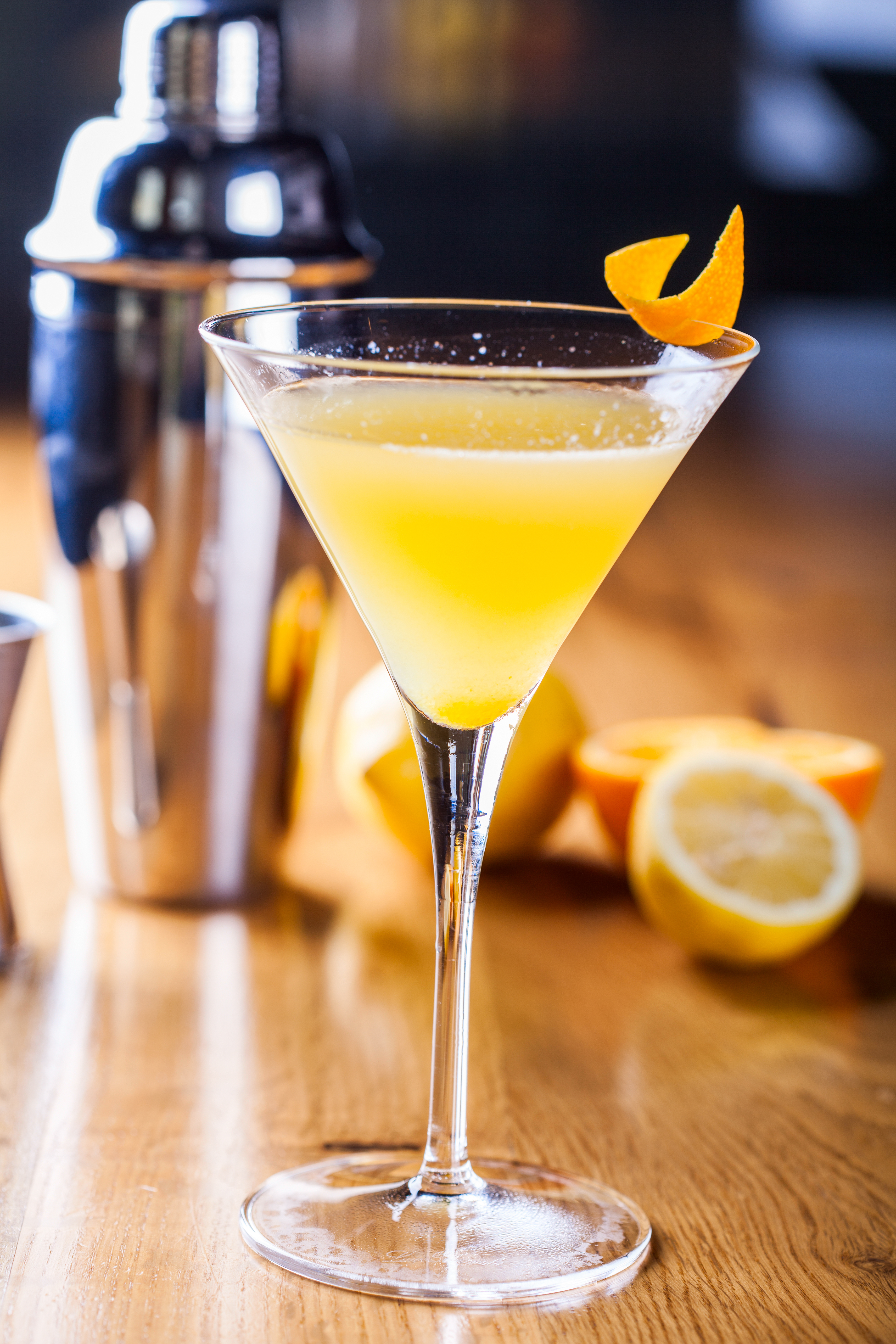 -Garnish: Orange peel (the bitter oils of the orange peel complement the cocktail)