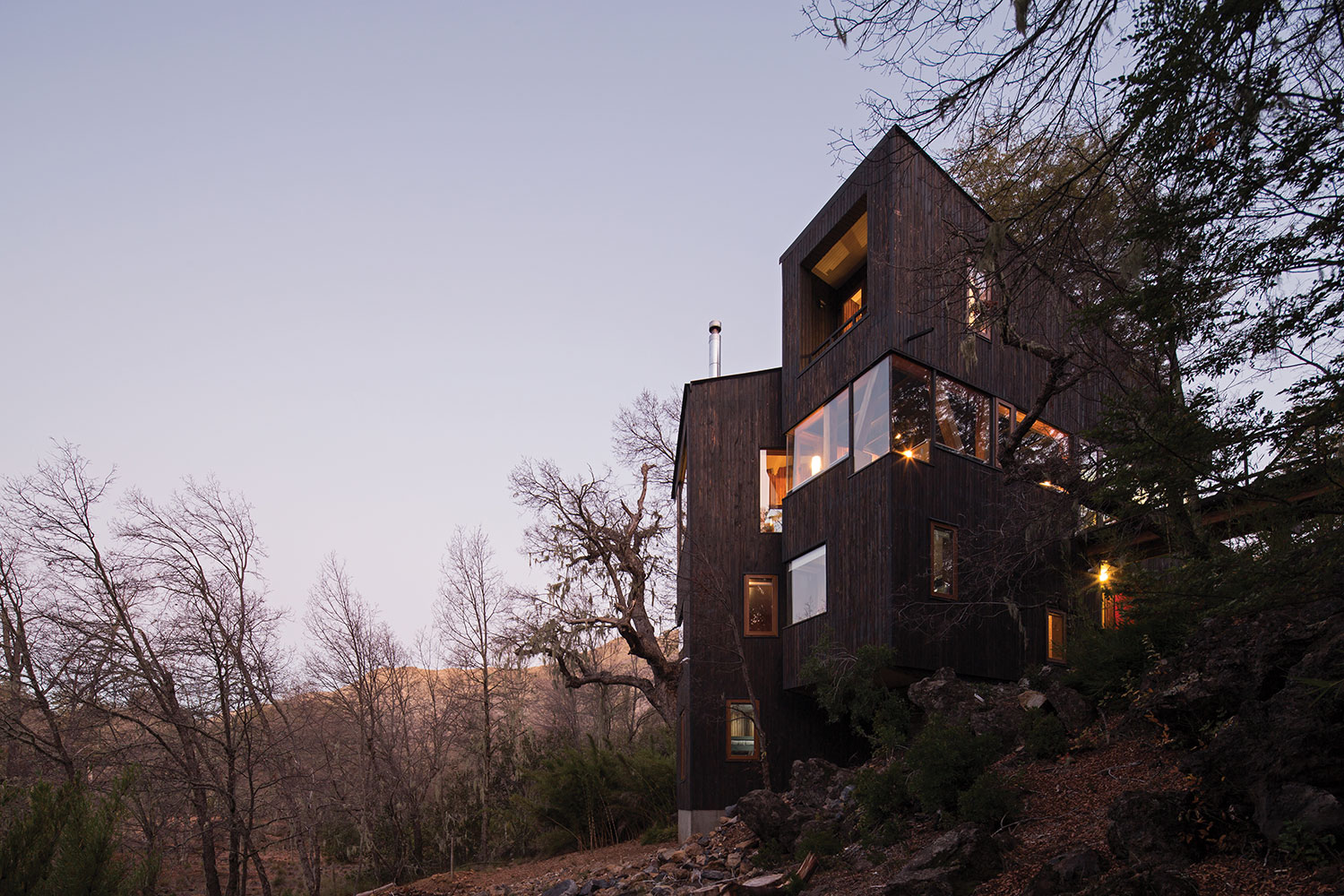 Chilean-based architecture firm Del Rio Arquitectos Asociados (DRAA) are in the business of sprinkling modern cabins within Chile’s native woodlands. These projects are meant to share the beauty of these unique landscapes with visitors. La Dacha Mountain Retreat, though it aesthetically appears similar to the firm’s Shangri-la project, was designed specifically for the plot of land it was placed on. Designed in a unique vertical V-shape, its second level floor-to-ceiling windows follow the sun’s path from rise to set while also serving as the entry floor to the home. Constructed from SIP board and Lingue wood, the home is a highly insulated mountain escape that keeps environmentalism in mind. The designers included a masonry stove that only requires one load of wood per day, and is meant to release heat at a constant rate for long periods of time. The walls and windows are specially insulated to keep harsher climates out. Panoramic views, warm spacious living areas and the opportunity to explore some of the oldest forests in the world make this cabin a must-visit.