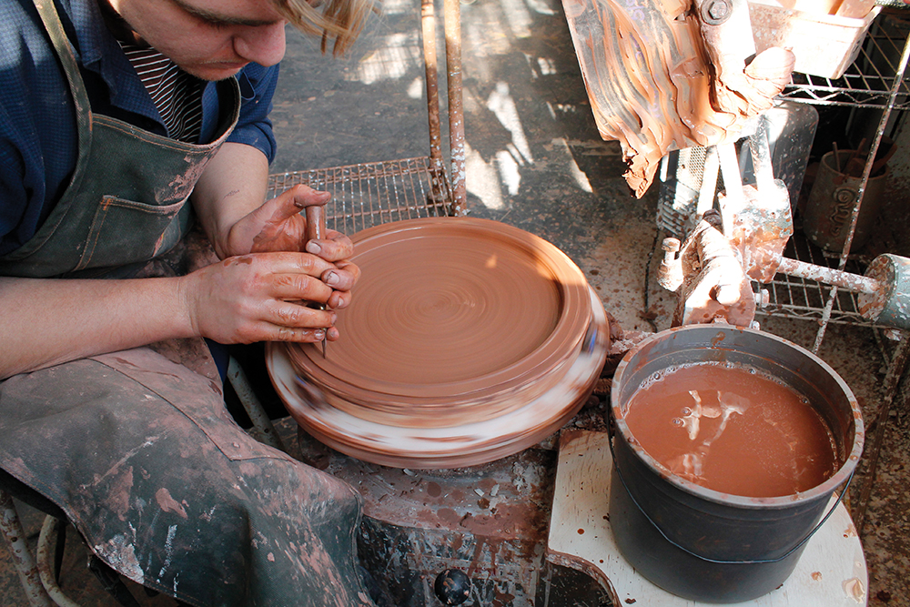 Inside his 4,500-square-foot space, Pandolfi serves as both a designer and manufacturer. Depending on the day, he’s either sitting down with chefs and customers discussing potential projects, showing samples, going over glazes, or he himself is behind the potter’s wheel, shaping clay, firing it off and shipping it out. The advantages of operating on this sort of scale (and acting as both producer and chief creative) is that Pandolfi’s products showcase his integrity and meticulousness with the consistency of something that is mass-produced.