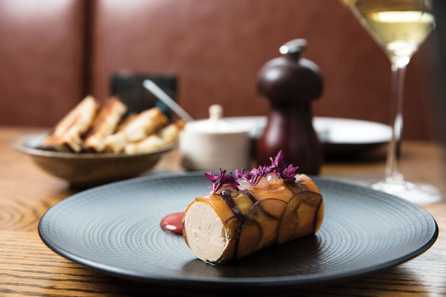 Take the beautifully plated tuna tartare, for example, a clever nod to a popular sushi roll. A mix of rich, red-colored minced fish gets lightly tossed with tangy ponzu, accompanied by sesame seeds, dollops of creamy avocado mousse and sweet wasabi gel. On top rests a perfectly smooth quenelle of cooling ginger sorbet for contrast.