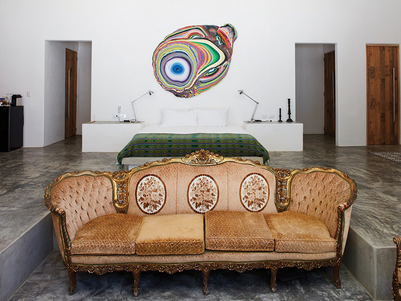 Inside, rooms are both sparse and abundant at the same time. Raw, rustic-looking materials give Casa Malca its sustainable status while leaving guests no other option than to focus on the hotel’s simple pleasures—its art. Every corner boasts some sort of work whether train traffic lights, old dental chairs, shoe lasts or heirloom dolls, to name a few, and the pieces on display are regularly rotated in and out. That way, no matter when you visit, you’re guaranteed a different viewing experience every time. Part of Malca’s personal success has been bringing emerging artists into the spotlight and with his hotel, it’s an opportunity to dictate who deserves recognition.