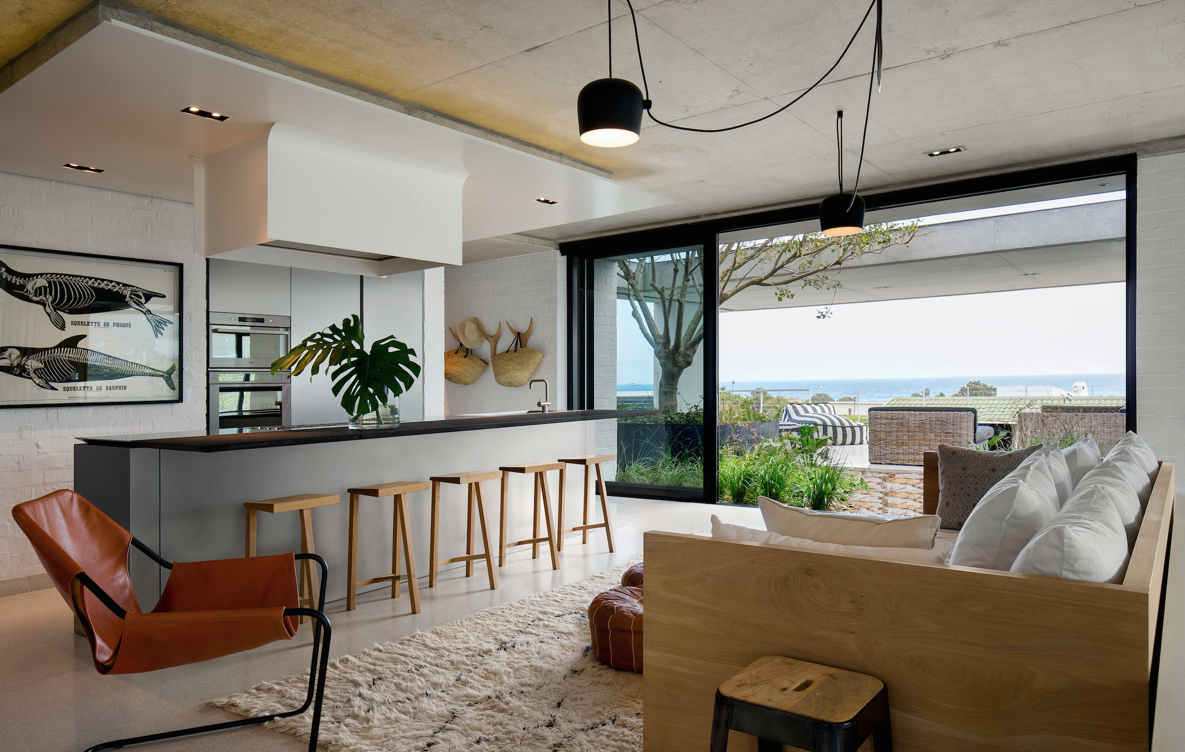 With a tough coastal climate and strong winds that sweep the Pringle Bay, hard-wearing materials were a necessity when building this true-to-form home. SAOTA architects Philip Olmesdahl, Riaz Ebrahim, Nasreen Larney and Werner Lotz carefully crafted Restio River House with a clean yet robust feel that is able to sustain any type of South African weather.