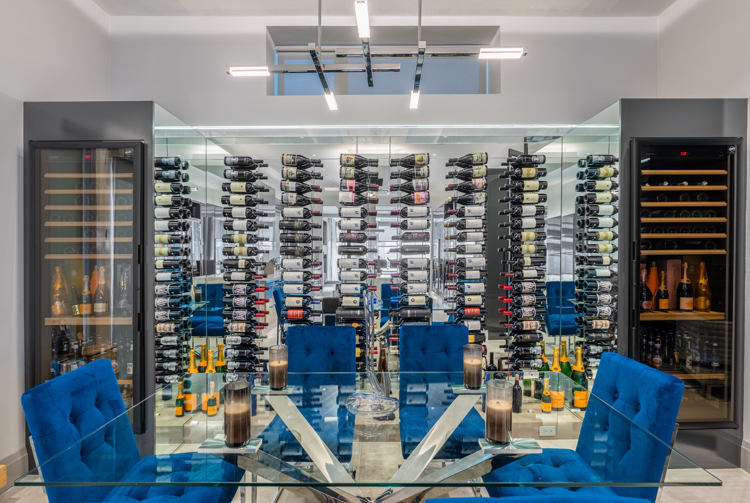 In terms of adhering to her client’s wishes, Vanessa DeLeon mentioned that although her client’s professional background influences him to constantly look for upgrades, “the house was actually built brand-new, so we wanted to keep up the integrity of what the builder built.” She split up the design process into two parts: before the designing could occur, she and her team had to understand and install all of the appliances that would need to be involved. She and her team found themselves “focusing on all the Smarthome and the open and close of the buttons, and all these crazy lights and installs, and adding all these metal doors…”, making the process an extensive, but rewarding one.