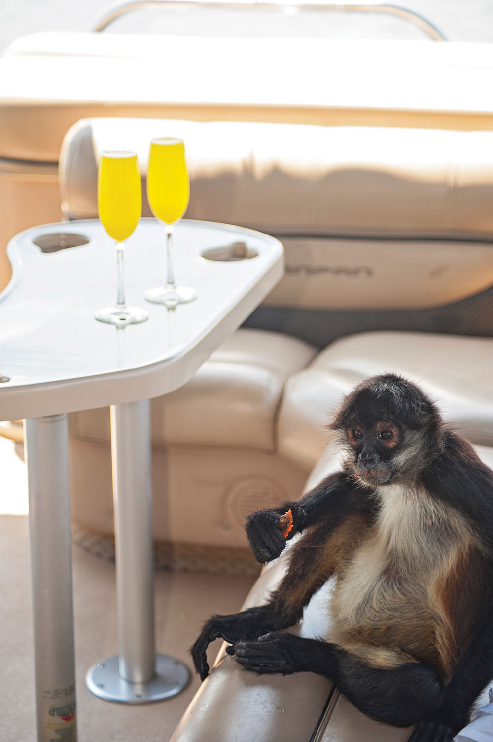 It was a little after nine the next morning when we took off for Monkey Island, one of five nearby islets surrounding Las Lagunas. We gathered on the dock where a rather subtle caution sign nailed to a tree read “No Swimming” followed by a picture of a crocodile. In that moment, it didn’t seem all that impossible that we’d see one while out on the lake. A short ride across the water brought us to a 30-acre reserve where our guides pulled the boat over and began whistling for the monkeys and tempting them with bananas. The long, lanky-armed Margarita showed no hesitation before jumping on board to greet us and when she wasn’t taking a liking to my personal belongings, she was posing for pictures and gnawing on fruit.