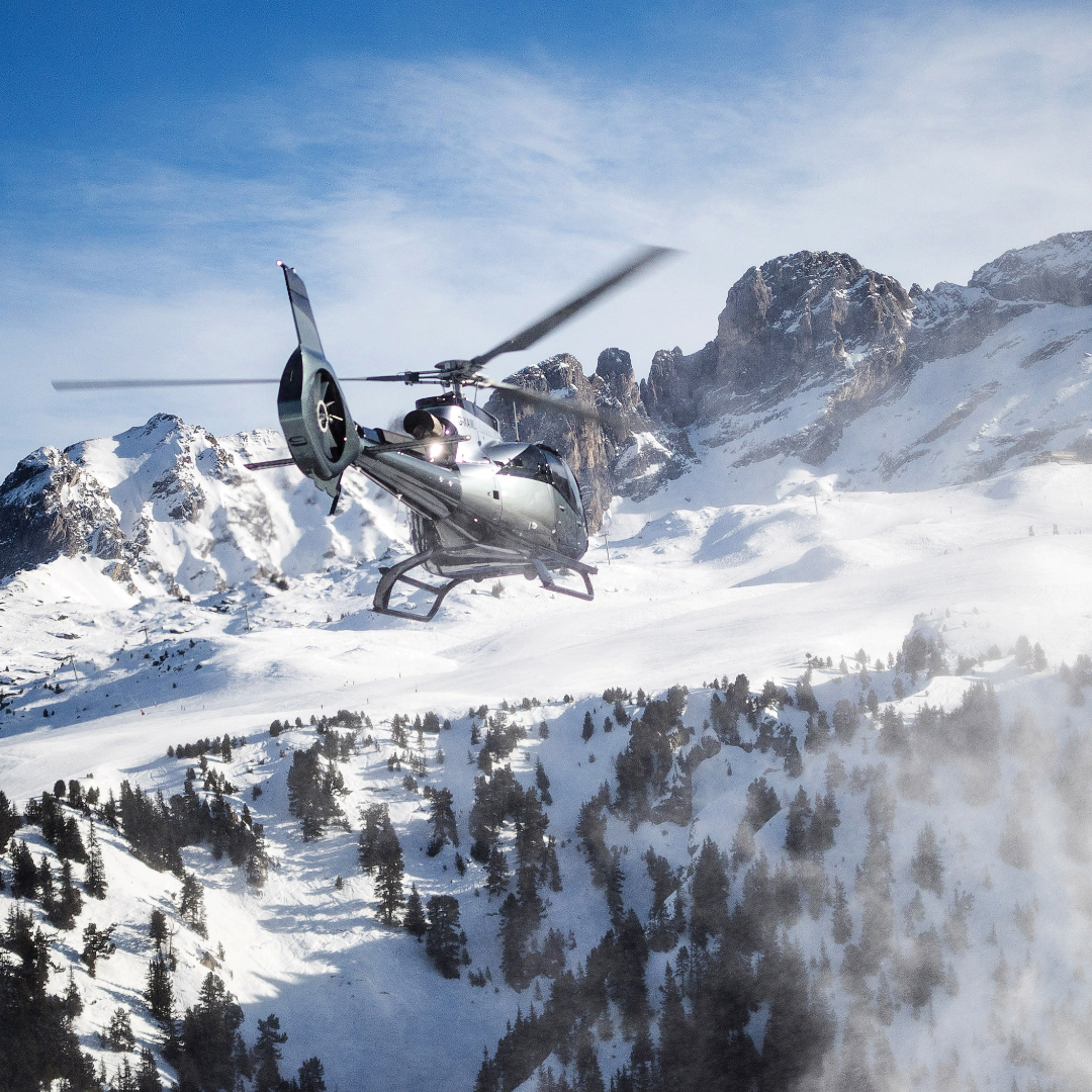 It was a clear day in January, and the mountains were blanketed with fresh snow. Helicopter blades beat the air overhead, descending on Courchevel. At the intersection of the world’s largest ski area in the French Alps—where a car ride from the nearest major city (Geneva) will run you upwards of two hours—it’s not uncommon for VIPs to chopper in for a weeklong holiday. But on this particular day, heads turn. A chopper unlike any other passes swiftly above the alpine landscape, and makes way for a landing at Courchevel.