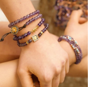 The products on the website are even categorized according to one’s intentions, with intentions such as “Happiness & Confidence”, “Protection & Peace”, and “Love & Loyalty” being included. Under “Health and Balance”, the featured pieces are jewelry that includes the gemstones amethyst, aquamarine, and tiger’s eye. These three stones contribute to making the wearer feel balanced and energized; for example, amethyst’s violet hue creates calming energy, aquamarine gives balance and tranquility, and tiger’s eye provides healing and courage. Sometimes the gemstones will appear in the form of crystals, such as in the Blissful Tranquility Amethyst Necklace, but they can also appear in the form of rounded beads, such as in the Tiger’s Eye Chakra Bracelet.