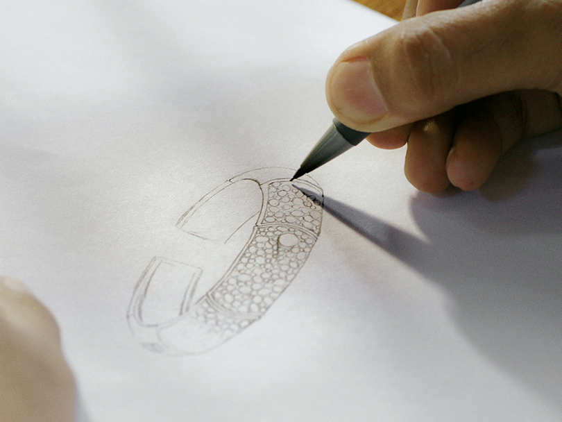 1. The eight-step process begins with a sketch. Each season, the design team is led by Creative Director Hollie Bonneville Barden to develop a concept through sketches and detailed watercolor illustrations. Unlike most jewelry companies, the inception of the design does not involve modern technology – every rendering is executed by hand.