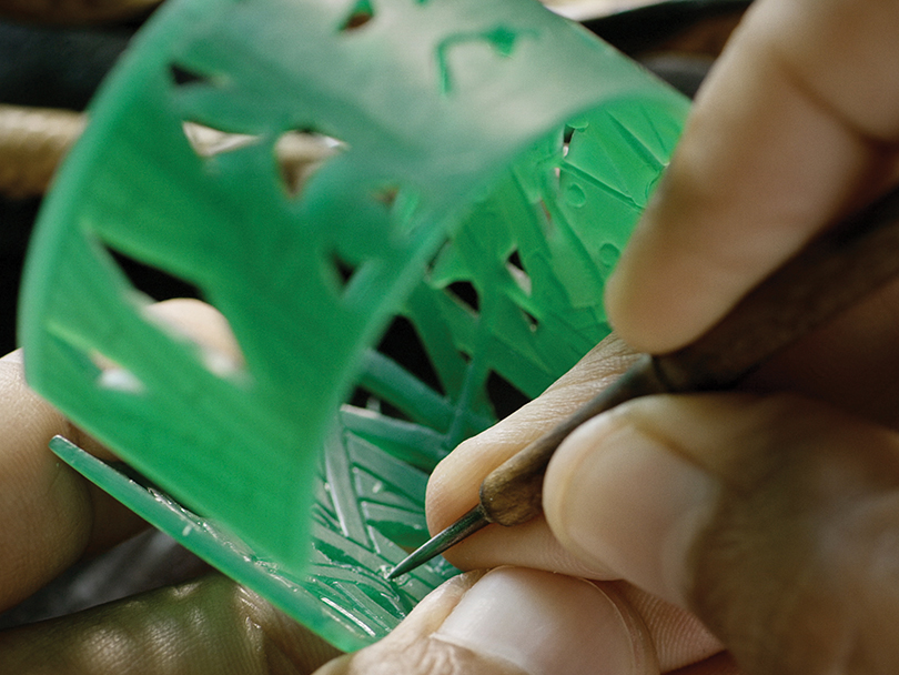 2. Once the design is finalized, the carving step begins. The artisans hand-sculpt the designs into a three-dimensional model made with jeweler’s wax which is meant to be carved, filed, sawn and polished. This process can take several weeks to complete.