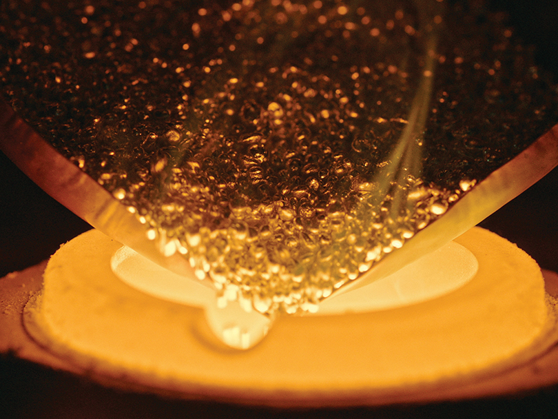 5. Once the silicone mold is cured, the artisans cut it in half and remove the metal model. Soft wax is injected to create the wax tree which is later removed and refined by hand.