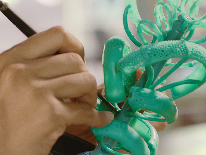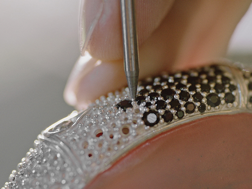 7. Finishing the piece, the artisans remove the branches from the mold to file, sand, and assemble the parts together by hand. They then begin to prepare the jewelry and start the process of selecting the gemstones that will later manifest in the final product. Every piece offers a uniform seat for each special stone.