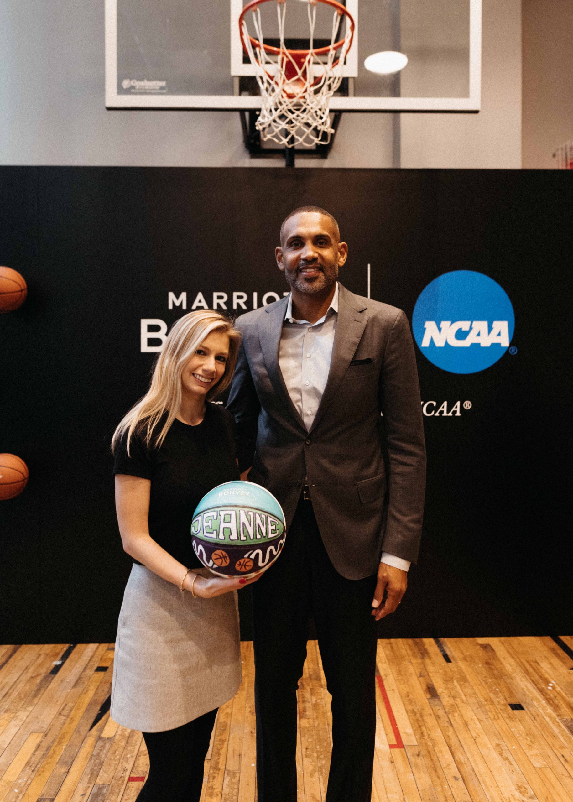 We had the opportunity to interview former professional basketball player and Hall of Famer, Grant Hill, who appears in Marriott’s new ad campaign alongside fan-favorite Mascots. Grant’s go-to hotel brand when he’s traveling the country is the Westin, and his favorite amenity is being able to order great room service to unwind after a long day. Attendees of the lunch received a personalized Marriott Bonvoy basketball that was painted by a local street artist.