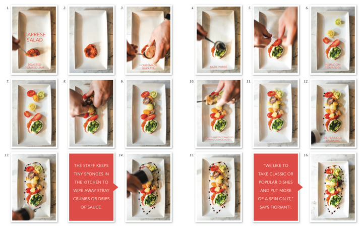 Fiorianti used this photo shoot as an opportunity to plate a new scallop dish for the first time. Under the camera lens, while fighting to hang on to that perfect 4 o’clock light, he styled the dish from scratch. He also took us through the plating for his caprese salad, a menu staple throughout the summer.