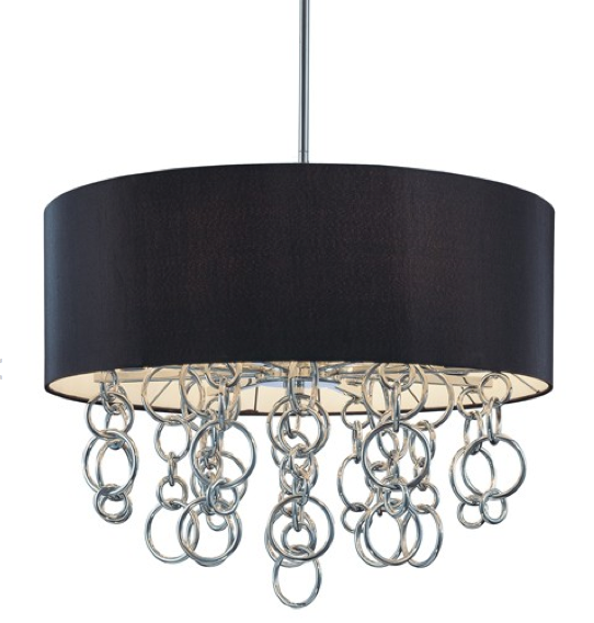 f you’re into the popular sphere shape trend for 2016, George Kovacs is one to explore. This Ringlets 6-Light Pendant Light model fixture combines the familiarity of a drum shade pendant with a chrome finish; the outcome is quite a unique design. Hanging from the fabric and linen shade, with incandescent light and metal in short chains, the chrome rings create a luxurious effect that is sure to be eye-catching. George Kovacs can be found at Paramus Lighting.