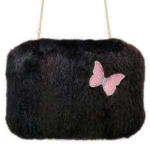 A fluffy bag you’ll want to snuggle with. The Starlet Clutch exterior features recycled genuine beaver fur and solid brass hardware with Swarovski® crystals.The interior of the clutch features a lambskin. A brass snake chain is included which is removable so you can style it however you would like. Viv & Eve are able to customize the crystal colors and the interior at your request.
