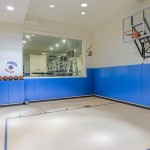Hop back in the elevator and head to the 1st floor walk out level designed with the avid entertainer in mind. Celebrate the kid in you by viewing a movie in your private 14 seat screening room or invite friends for a game of basketball on your private indoor court. Workout in your private gym, and conclude with a steam or a visit to the sauna. Stop off and select a bottle of wine from the striking wine cellar and tasting room. Additionally, this floor has two bedrooms, another full kitchen and 2.5 baths, allowing guests to spend their time comfortably while they enjoy all of the exceptional amenities. As you wind down your day, head out onto the stone patio and into the pristine in-ground swimming pool, utilizing the nearby pool house facilities when needed.