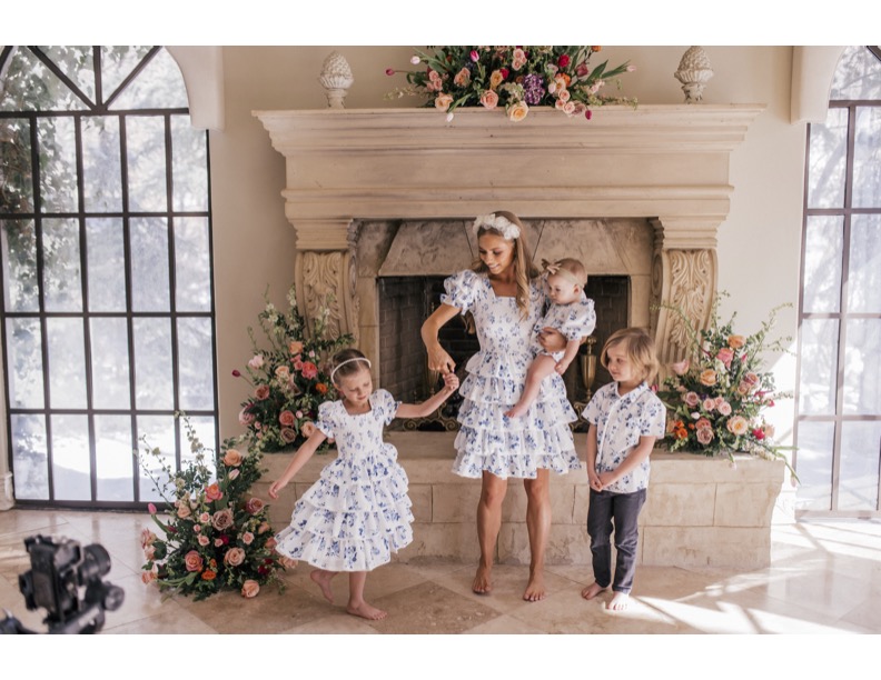 This smocked midi features a delicate floral print, tiered ruffle skirt, square neckline, and elastic puff sleeves to round out the special details. She can match her littles ones as she twirls on the dance floor with the girls, baby, or boys version.