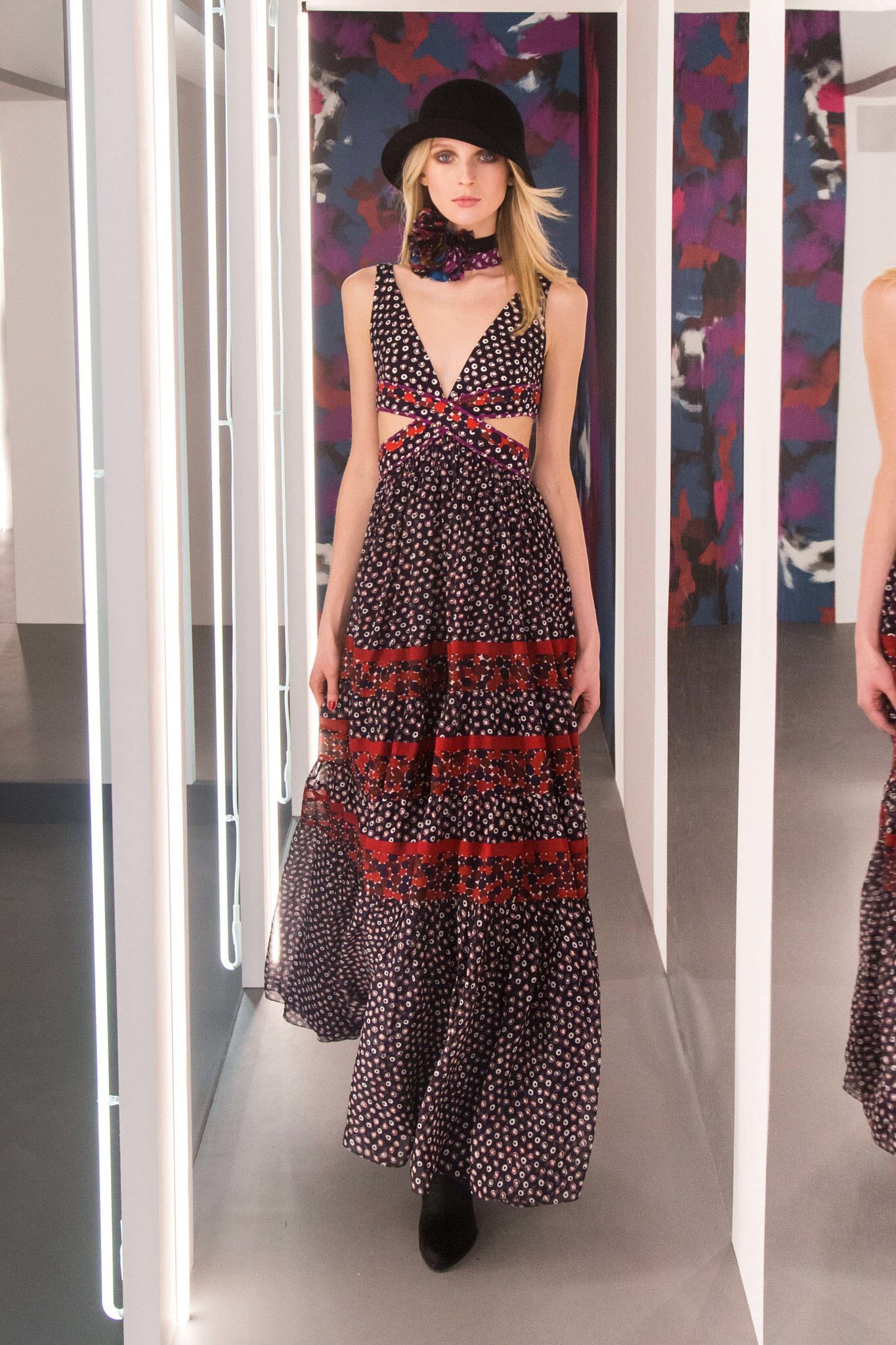 Not afraid to stand out, designers Mara Hoffman and Diane von Furstenberg presented collections that fit right into the 70’s, offering disco inspired prints and color. Von Furstenberg kept it youthful and sexy, showing variations of her signature wrap dress in slinky silhouettes and high slits complemented by gold, silk, and loud patterns, while Hoffman’s eclectic vision contained animal and tribal prints, wide leg pants, and flowing jumpsuits. The Joseph Altuzarra collection utilized fabrics rich in jewel tones, accented with stripes and paisley prints. Pieces like chunky, textured knit tops and fitted trousers strengthened his unique style and aesthetic.