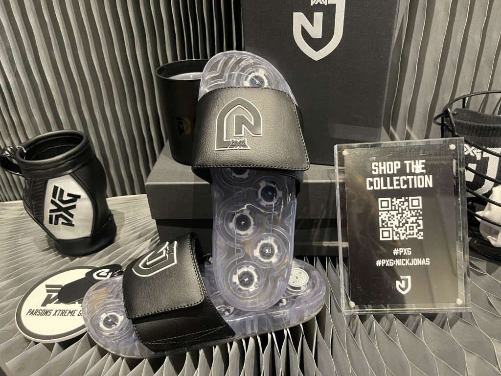 With elevated details like buttons in place of snaps, the NJ crest logo on polos, striped details, and the use of high quality fabrics, the line offers a sleek and modern spin on traditional golf wear. With its durable functionality and aesthetic design, anyone wearing a piece from the PXG x NJ Capsule Collection can run from the golf course to a dinner event and feel at ease. While speaking with Ray Mate’, HYPEGOLF Senior Editor, Nick Jonas shared that one of his favorite pieces in the collection are the après golf slides, PXG’s first foray into footwear. With a unisex design and details on the sole of tiny spikes built into the clear rubber base, the slides are a perfect example of the ingenuity this collaboration brings to each piece.