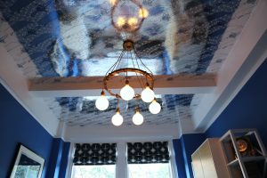 A unique challenge of decorating this apartment was finding furniture that adhered to the clients’ desire for an eco-friendly home. They wanted the apartment to have the cleanest possible fabrics, and to eliminate VOCs (volatile organic compounds) and formaldehyde, which are both commonly found in sofas, high-gloss paints, manufacturing of different types of wood, and furniture glues. The designer admitted it was a challenge vetting every item she used, but one that introduced her to extremely talented, eco-friendly companies. For example, the blue sofa in the Warhol room was custom-designed and made purely of renewable rubber, with fabric made using dyes that were reported to be safe enough for an infant to eat. She is thankful to still use these exceptional resources to date. Sarah Elizabeth also enjoyed weaving her client’s collection of vintage furniture into the room designs, such as an original Sputnik chandelier, a Karl Springer blue goatskin dining table, Hans Wegner armchairs, and collection of original art. “They had a collection of wonderful vintage original pieces to work with that were a lot of fun to find new homes for throughout the apartment,” she said. The Sputnik chandelier was repurposed from the clients’ former master bedroom to the dining room, where the designer carried that sparkle throughout the room using an antique mirror-inspired wallpaper on the custom bookcases. The dining room has a slightly more neutral color scheme, perfect for their collection of brightly colored books and accessories. The furniture, especially the dining table, served as another puzzle to solve as the clients requested a 15 foot dining table. In the end the best solution was to place two dining tables together so they read as one table while still giving the same dramatic effect. The dining table is flanked by custom-made bookcases that span 18 feet. The designer recalls it took her nine hours to curate the shelves with books, vases and artwork. For the living room gallery wall that spams the length of the room, Sarah Elizabeth collaborated with an art hanger who formerly hung art for the Guggenheim Museum to configure and hang over 40 paintings and photographs in rooms around the home. “Working with such skilled artisans and tradespeople was, and still is, a huge highlight for me. Seeing their passion and love for what they do and how it comes out in their work inspires us all”. It’s safe to say Sarah Elizabeth’s first solo project was a bright start.