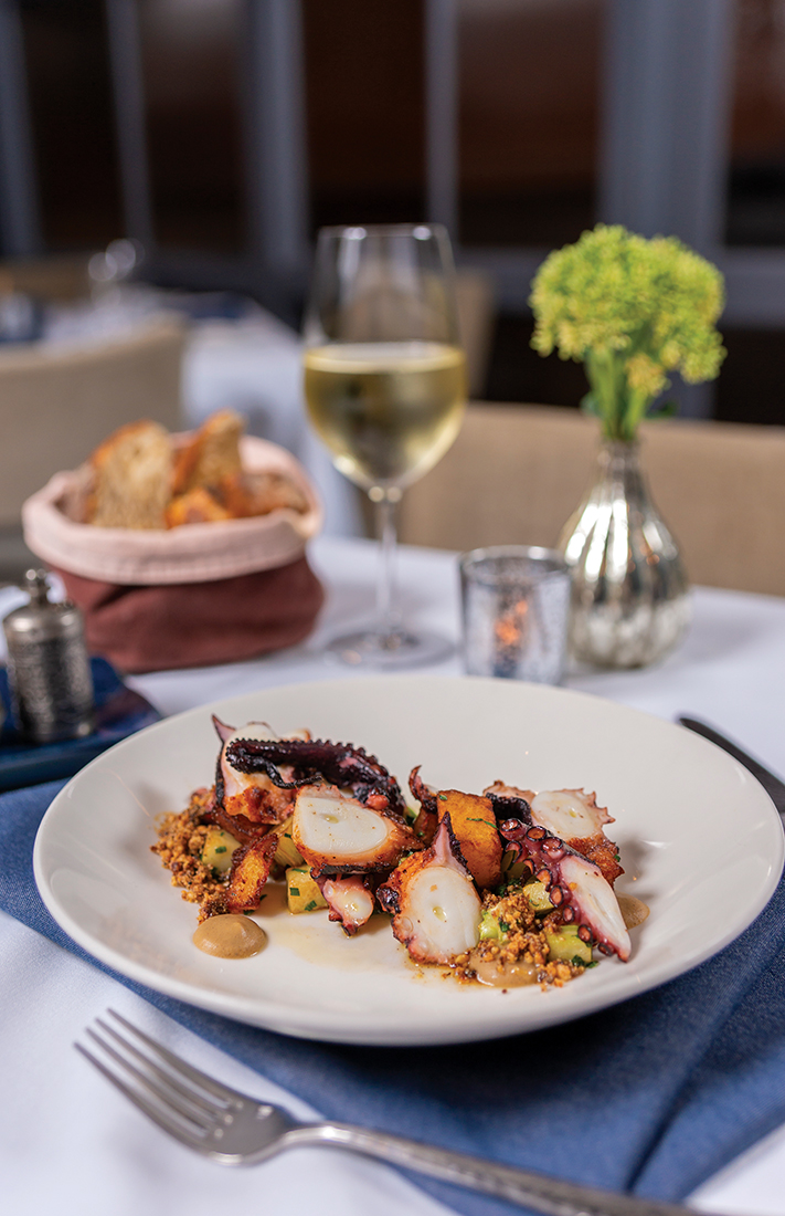 Other standout starters included the chicken liver mousse topped with apricot preserves and the grilled Spanish octopus with crispy Yukon potatoes, broccoli and brown butter crumble. They’re repurposing the unused broccoli stems from Summit House’s charred broccoli side dish and the key to the octopus, I learned, is to sous vide it first and then finish it to order on the grill.