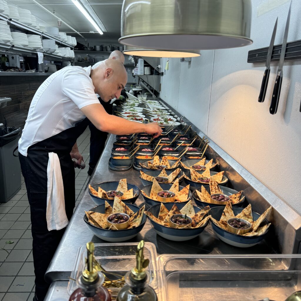 Partners, and husband and wife, Irena Angeliades and Mike Wieczorek opened Symi to showcase the incredible flavors and dishes embedded in Greek culture. Growing up with her father running Kyma, a New York-based restaurant group, Irena learned the ins and outs of the restaurant industry and ultimately decided to open her own when she moved to Northport, Long Island and noticed a lack of authentic Greek cuisine. Wanting to share her love for her culture’s cuisine, the process of creating Symi Restaurant began with finding the perfect location and partnering with an exceptional chef.