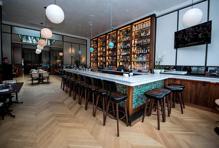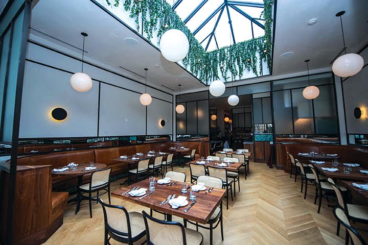 The two-story space is split between a dining area and downstairs smokers lounge, each with their own vibe. Upstairs, floor-to-ceiling windows flood the restaurant with light, while dark wood furniture and accents lend a sophisticated touch. Further back is the garden room, an elegant indoor-outdoor space where vines drape from the ceiling and hanging plants dangle from the walls. The garden room also has a transparent retractable roof that allows for a unique dining experience year-round. Downstairs, the lights are dim, and premium storage lockers line the hallway. A built-in amenity for patrons, these lockers are filled with an array of wines, whiskeys, and bourbons, and can be used for cigar storage. The lounge itself has an old school vintage flare with its own separate bar and intimate 40-person seating area. c6a5cb9e-27a4-478c-9ca7-3b5d683f7a2a