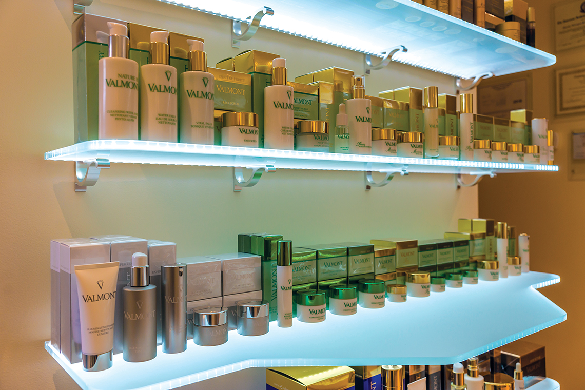 “I was looking for a product that was very high quality, but also that would give me results. I prefer a product line that’s family-owned and exclusive to estheticians. But most of all a company that has a passion for research and applying a unique methodology to skincare.” The Art of Beauty also carries Swiss cellular cosmetic skincare brand Valmont, which uses a combination of active molecules, plant extracts, and Alpine glacier water.