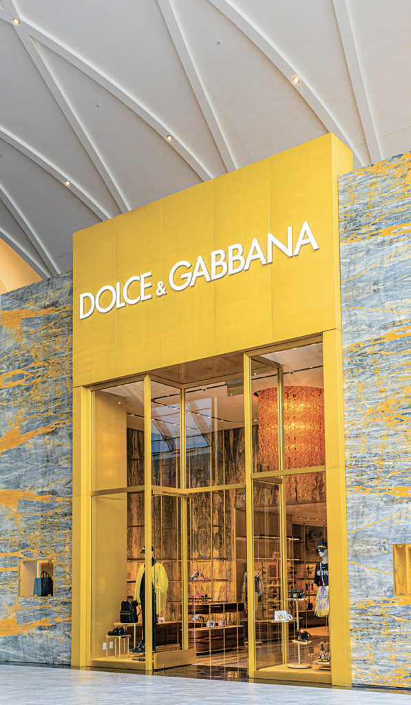 The visual splendor of The Avenue is ultimately all window-dressing for the storefronts that line the wing’s brightly lit hallways. The Avenue was conceived as the newest luxury shopping and dining destination, and eventually, most of the colorful murals that visitors now see will give way to some of the best-known high-end brands in the world. In fact, that is already happening. At the time of the ribbon-cutting ceremony in late September, there were only five stores open to the public, plus the high-end Italian restaurant, Carpaccio, on the second level. More stores have opened since then such as Anne Fontaine and Dolce&Gabbana, Johnny Was, Yves Saint Laurent, and Alexander Wang, and the famous French luxury goods manufacturer, Hermes. Mulberry and Tiffany&Co. will be opening up branches at The Avenue soon.