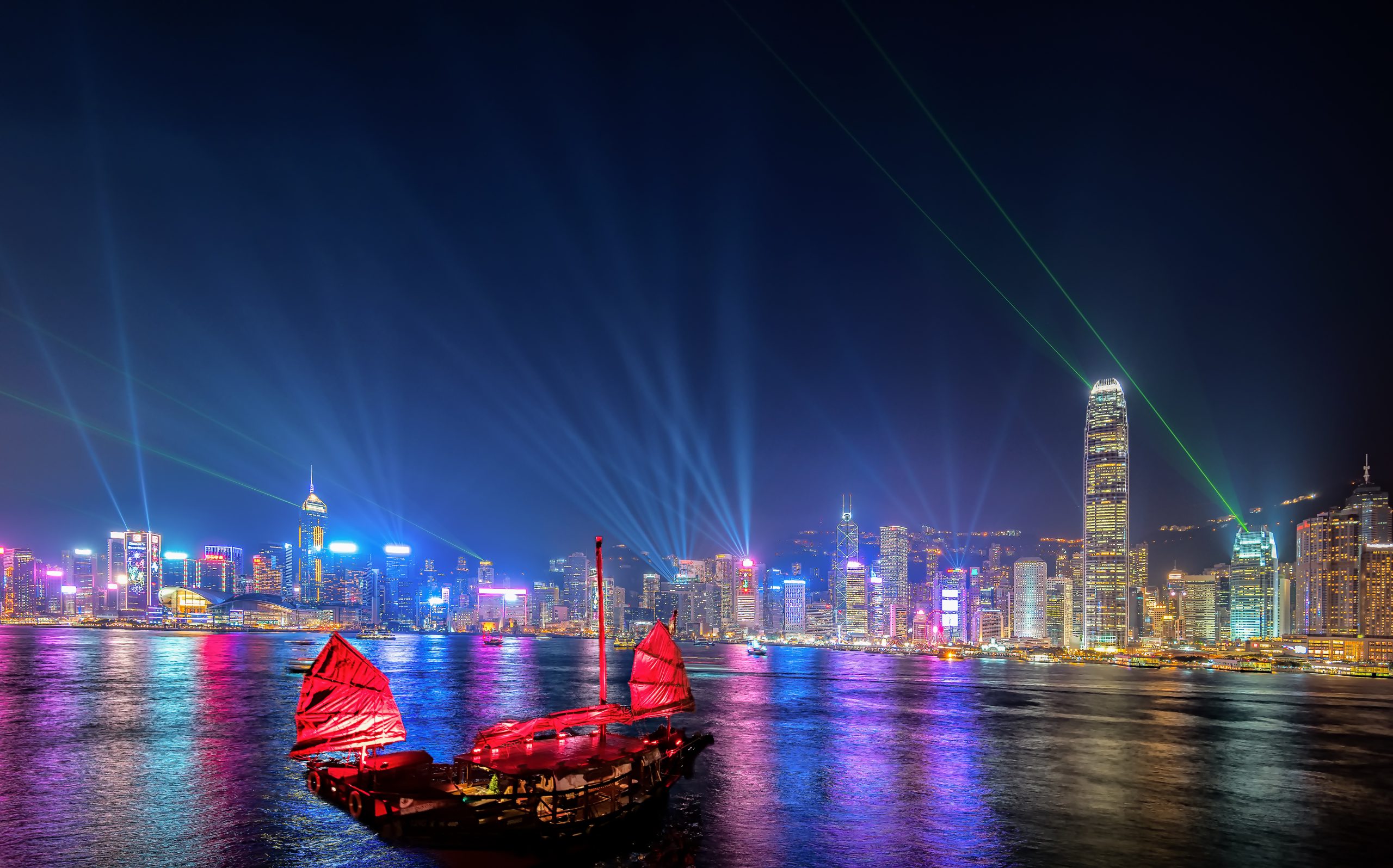 Music and lights create an elaborate spectacle during the Symphony of Lights in Hong Kong, China.