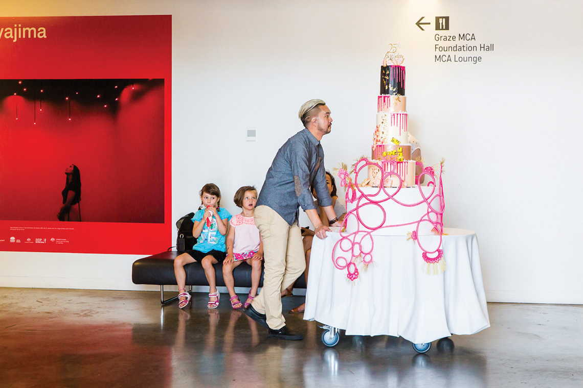A crowning achievement for Luu thus far has been an avant-garde cake he was asked to make for the Museum of Contemporary Art Australia’s 25th birthday—which was cut by the Prime Minister himself. “For this milestone, I created a five tiered cake which incorporated iconic artworks/exhibitions that the museum has had in the last 25 years.” The cake’s color palette was inspired by architect Sam Marshall who was responsible for renovating the museum back in 2012. Luu also worked with a Melbourne-based cookie artist and local art educators to put the whole thing together.