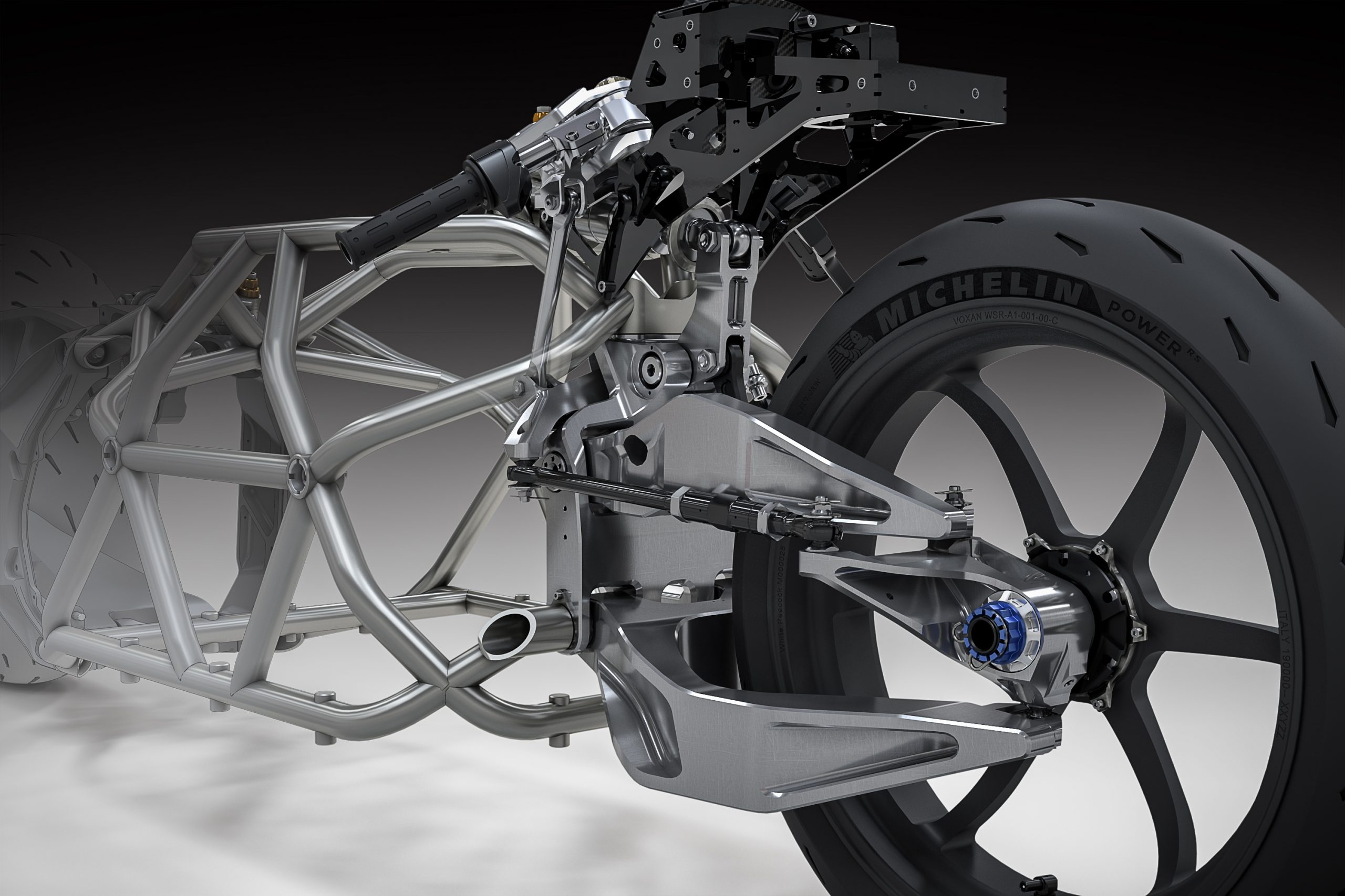 The same start from scratch baseline goes for providing enough juice to get out of the gate. Amassing 50% of the motorcycle’s weight, battery performance requires something more if the salt is going to be left in the dust. “There was simply no battery on the market that fit the bill,” Voxan declared. So the professionals got a jump on the problem by partnering with Venturi North America, and with the help of affiliated engineering students at Ohio State, the curriculum tested the world’s most powerful cells. Beating the curve, Monaco accepted the charges and endeavored to find the best possible power- to size ratio. 1470 cells later, the battery weighs in at 140kg and yields 317 kW of nominal power. The accelerated leap forward doesn’t require a custom grip below, and Voxan is sure that Michelin Pilot RS+ will hold tight. 190x55R17 on the rear wheel, and 120x70R17 at the fore, the choice amounts to more than off the rack, though. Test benches normally used for aircraft tires demonstrated that speeds of up to 450 km/h can be withstood. So when the odometer hits 330, any burning rubber will be held at bay. Of course, when the smoke clears next year, the 2700 mm blur could be missed in the blink of the eye. But the vision of Gildo Pastor and his engineers will be clear, and the sight will signify a historic pillar.