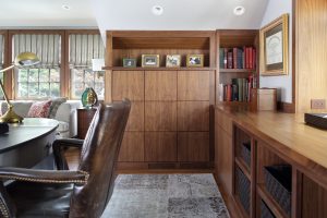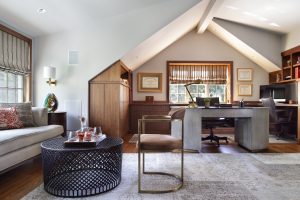 This home office provides a greater deal of workspace and lighting than most typical offices, while also doubling as a secluded getaway room. Working from home in this space sounds like a dream, and embodies the “thymeless luxury” that Sharon believes in. To see more spaces that Sharon has designed, or to set-up a consultation of your own, visit https://thymeandplacedesign.com/ or call 201-847-1400.