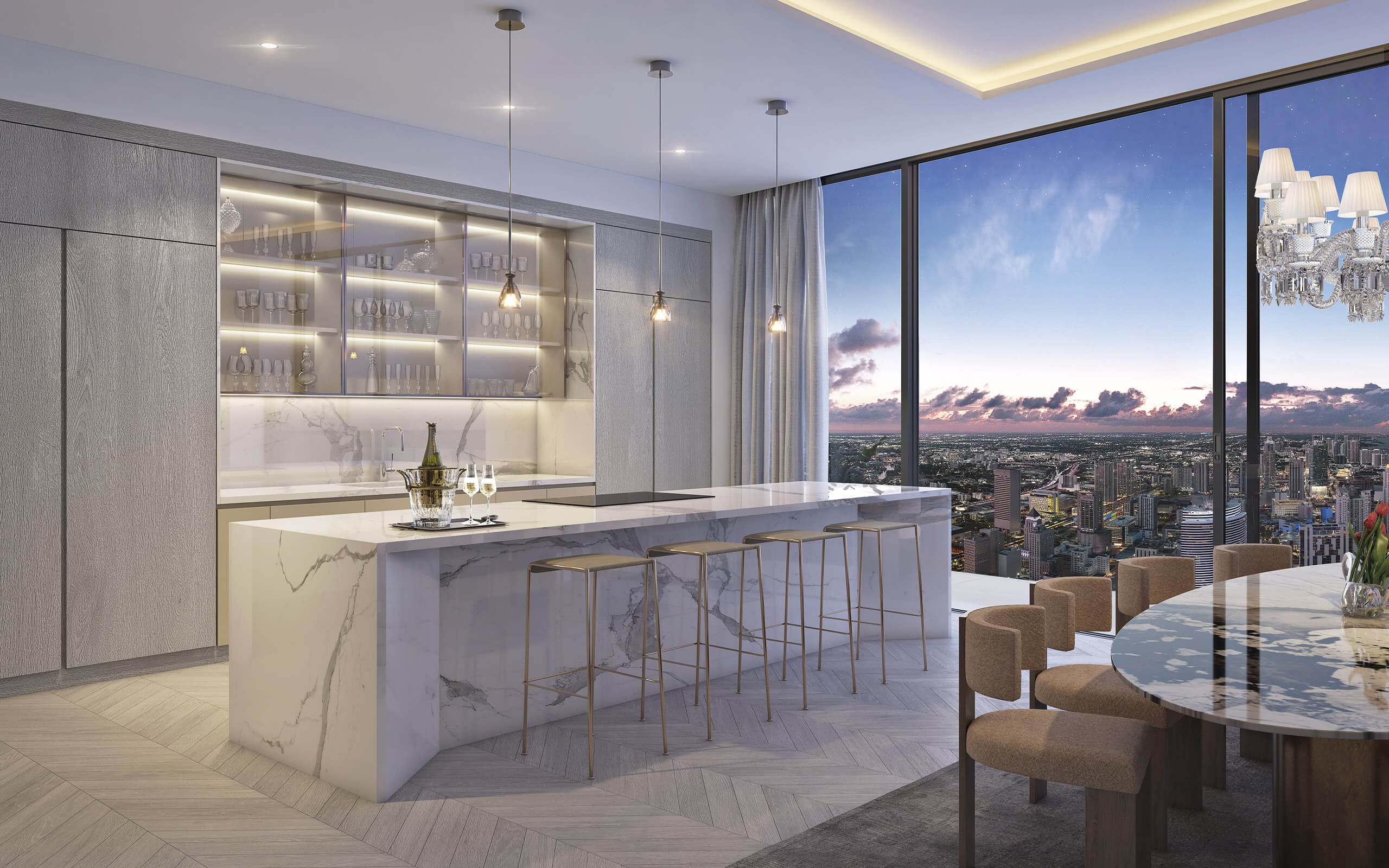 This luxurious 45-floor condominium is set to join the Miami skyline with its impressive view of the Biscayne Bay and the city.