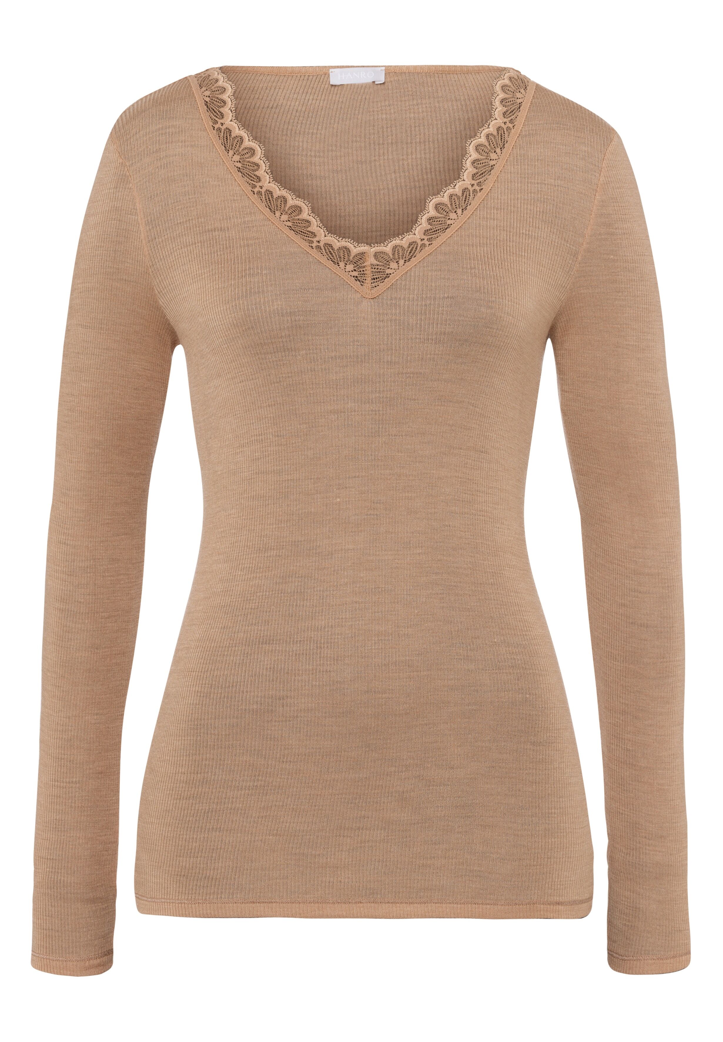 HANRO Woolen Lace Legging & Long Sleeve Shirt in Camel