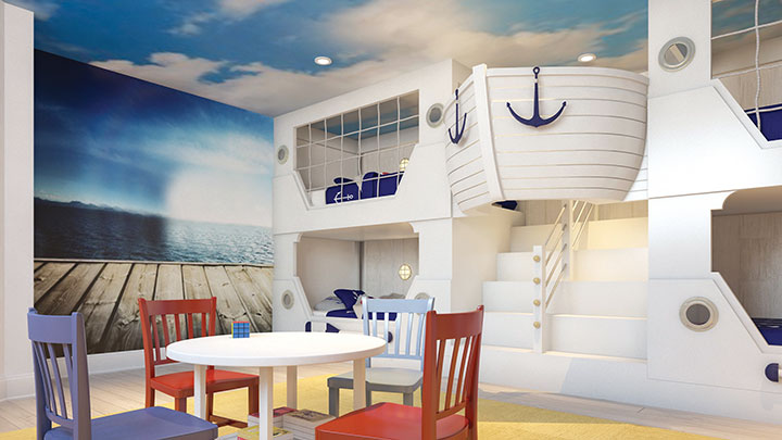 2. Use a mural on the ceiling, transforming a magical room from wall to ceiling will bring out the creativity in any child— the sky is the limit.