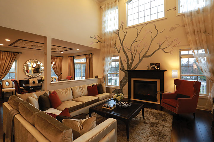 4. Try a tree painted over the fireplace with the windows on each side for an earthy and relaxing feel. Grab a book while sitting under this tree; this works great in a living room, library, or great room. It can also be done in a kid’s room with hanging fun characters and pictures of friends or family from the branches, especially over a stairwell leading to an upstairs room.