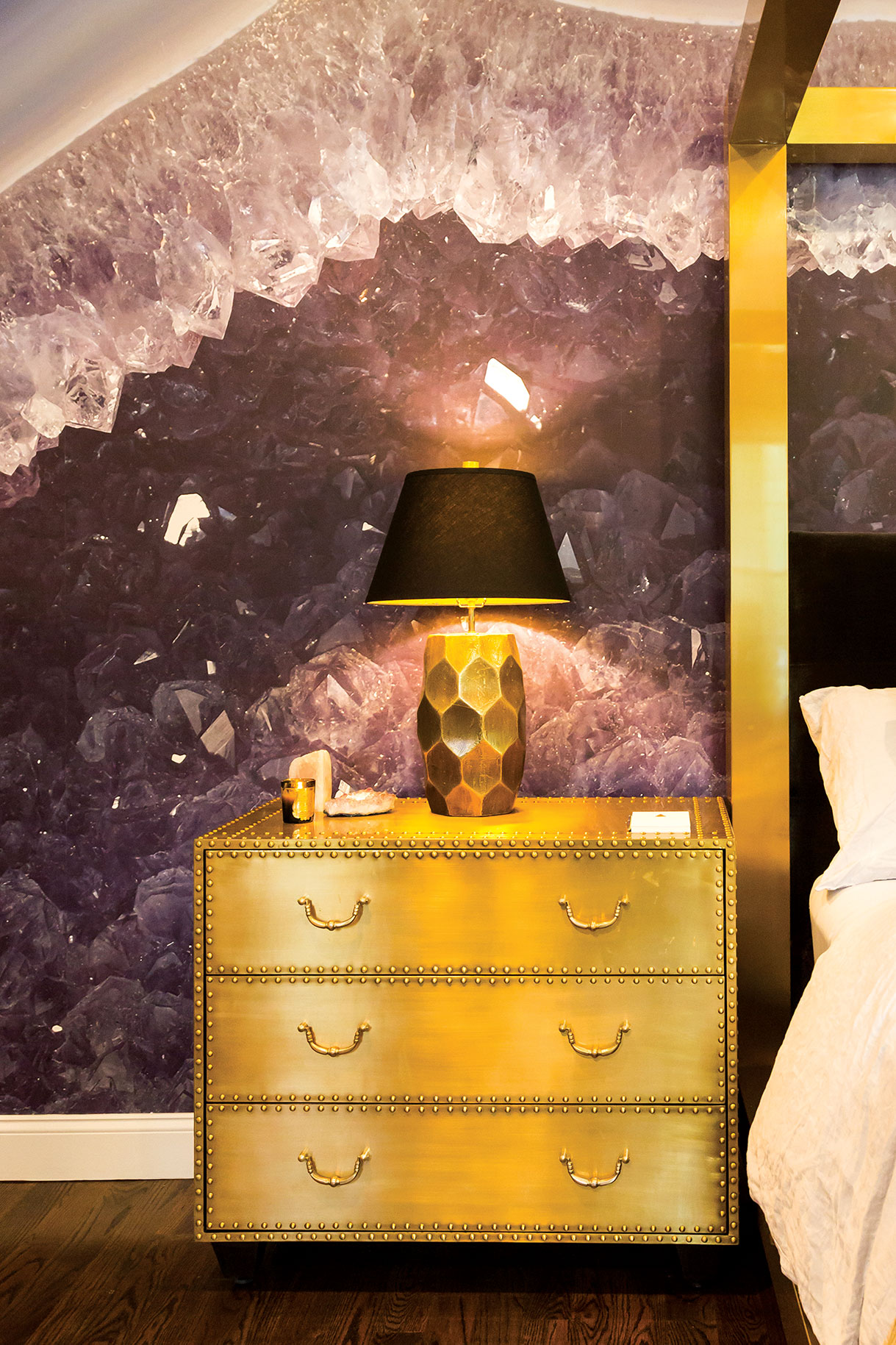 5. This beautiful amethyst mural located in a bedroom is both elegant and powerful. This beauty goes well in any room.