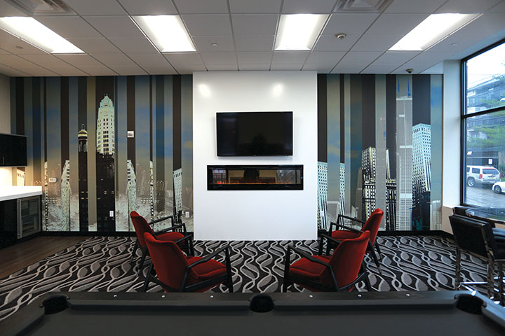 6. No matter where you are, skyline city views exude luxury. This mural is spectacular and bold; it works well in a recreation or entertainment room.