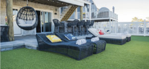 Working with EP Henry and All Green Landscaping, the perfect front and backyard was achieved. Beautiful pavers and stone fill the driveway, backyard, built in fire pit, and outdoor kitchen. Top-of-the-line appliances by Coyote Outdoors were introduced including a 36-inch grill with a massive side burner, refrigerator, and warming drawer to keep food from getting cold. The beautiful outdoor furniture found on each level of the home combines a variety of collections by Sunset West to create the ultimate resort vibe. Garden Mark Turf was the final ingredient which gives the yard a warming and natural feel and works perfectly as a transition to the edge of the water.