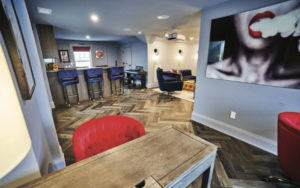 Moving up to the 3rd level is the loft, which is the only room in the home that veers off of the coastal farmhouse path. Instead, it presents a New York City lounge feel and features a movie theater, lounge, and full bar including a Perlick single-column dual chilled wine refrigerator to house an array of wines for any guests taste.