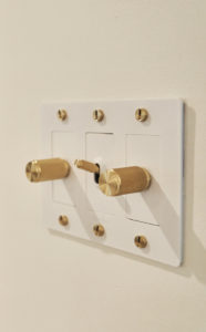 When it comes to DeLeon’s design tactics, she is all about the details and the accents that invoke a “wow” factor. A couple of minor aspects of a house that DeLeon feels are that when designing homes, people do not spend enough time thinking about the minor details including doorknobs and light switches.  While it may be looked at as a side note while picking out things like paint colors, doorknobs are the centerpiece of the door. Emtek Door Knobs were carefully chosen to complement the coastal farmhouse theme. Marble handles accentuate the elements and tones throughout the home while crystal knobs are introduced to tie in additional design elements. The light switches which were created by Buster + Punch, a motorcycle-inspired company, boast a unique, knurled style that adds rustic character to a traditional wall switch.