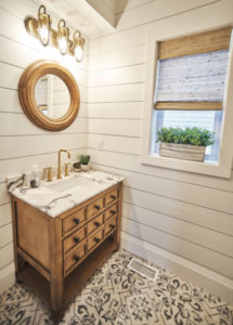 With the team’s love for style, color, and patterns colliding, Jamie-Rae and DeLeon hand-picked virtually every material and element of the home, executing a divine coastal farmhouse feel. Spending years flipping through catalogs and scrolling through dreamy Instagram accounts, Jamie-Rae drew inspiration from the water, yet envisioned herself in a chic farmhouse, paving the path for the design of her new dream house. Jamie-Rae and DeLeon worked together to create different mood boards for every room in the house to ensure that all of the coastal and farmhouse components of the home would seamlessly blend. This house is all about balance. Using mixed metals for an eclectic accent, and farmhouse-feel centerpiece items, this home completely captures the essence of a farmhouse on the water, boasting a beautiful meeting point between modern and traditional. Creating the dreamy coastal farm-vibe found in this home had challenges, especially when it came to picking out the colors, and making sure the two different vibes were purposefully put together.